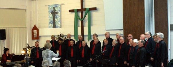 John Hales and Geoff Serpell melodramatically presented the humorous Gendarmes’ Duet before the choir launched into a medley of toe-tapping American Gospel songs, Rushan Hewawasam and Drew Hopkins then sang a lovely tenor duet with Isle of Hope, Isle of Tears.