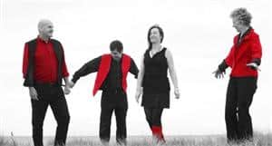 Tears and makeup were attended to, tissues balled up and relocated before Faleiry composed herself to go and sit at the Welsh harp to play with the Welsh folk group Pendragon Dreaming. Spirited performances of Hen Ferchetan and Nyth Y Gôg were followed by Owen Huw’s Hornpipe with a display of Welsh clog dancing by Lauren Ash, followed by the traditional Ffair y Dorth. Instrumental versatility was evident in Gawain switching from double bass to guitar, Siân from flute to violin and Pedr combining vocals with the ladies while managing both the guitar and didge (pictured left to right: Pedr, Gawain, Siân, Faleiry).