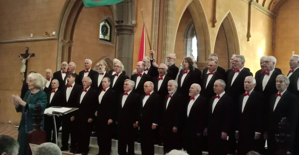 Faleiry led the choir in a rousing Welsh opening bracket – Cwm Rhondda, Ar Lan y Môr, Calon Lân, and Gwŷr Harlech – with the enthusiastic audience joining in the English verses.