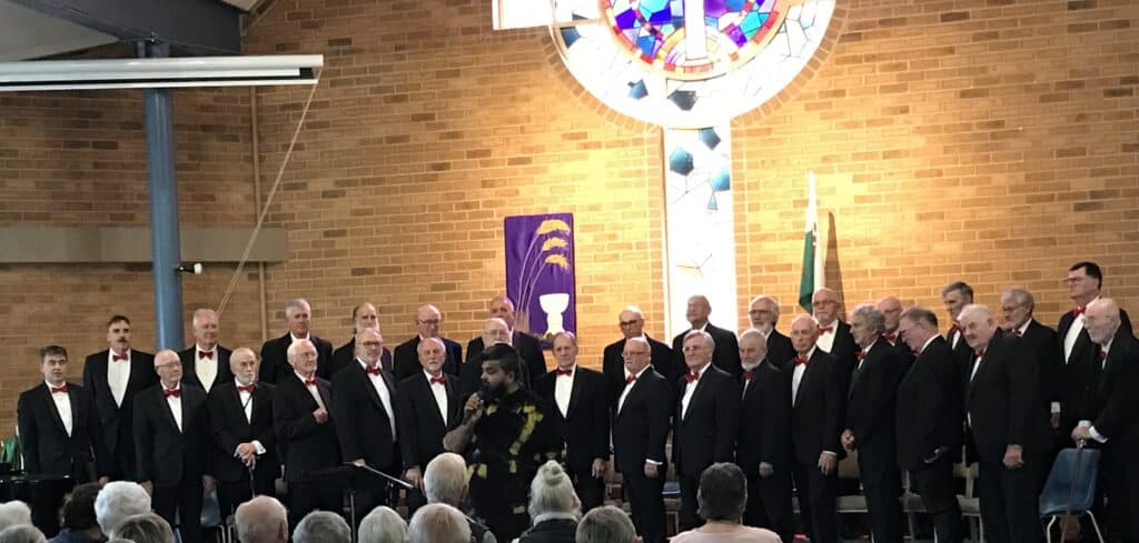 The choir was pleased to be back for the fourth time, at the request of the Mitchell River Rotary Club but this time at a new venue The Bairnsdale Uniting Church oddly but luckily located in Lucknow. Musical Director Rushan Hewawasam invited the capacity audience to stand for the Welsh National Anthem Hen Wlad Fy Nhadau (Land of my Fathers) which was delivered complete with the waving of the Welsh flag.