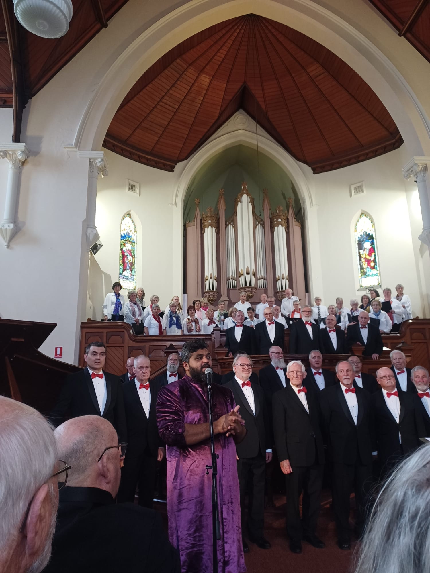 The finale was Rushan’s arrangement of You’ll Never Walk Alone combined with Climb Every Mountain with the U3A Choristers singing two verses of the second song from their unique mini-mountain elevation. The impact of the two choirs singing together was so powerful that many patrons rose up from the pews to deliver a well-deserved standing ovation.
