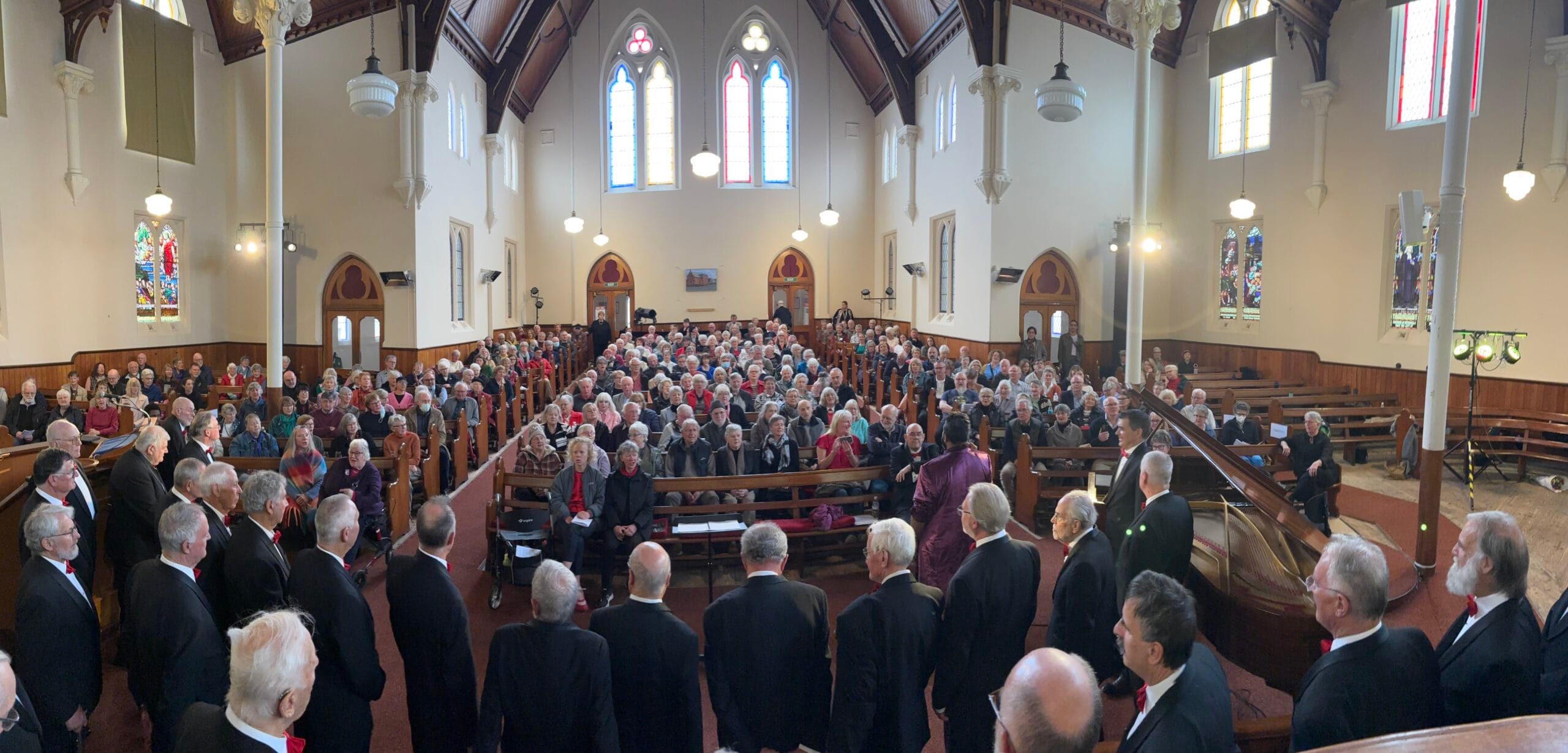 The choir’s Ballarat chapter organised the marketing, publicity and sale of tickets for this Saturday afternoon concert at this new venue which was totally filled up by eager patrons on the day. After a delayed start, to shoehorn everyone in, nearly 300 people stood as the choir led the singing of both the Welsh and Australian anthems.