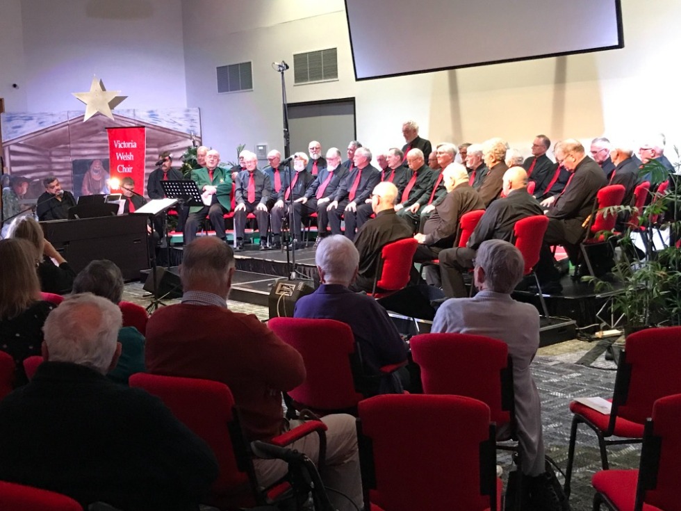 He then explained that today was quite an emotional day for the choir as both Roger Bartlett and Lorna Ogilvie would be retiring and that this would be their last concert. As a swan song, Roger stepped forward to sing one of his favourites, the heart-wrenching Homeward Bound, written by Marta Keen, after which all his fellow choristers stood as a man to applaud him and salute his outstanding contribution as a soloist and duettist over 28 years. With many moist faces amongst the assembled company, heightened emotion continued with the next song What Would I Do Without my Music. This was followed by Hafan Gobaith (Haven of Hope), originally sung by Bryn Terfel as a fundraiser for a children’s hospice in Wales. Next was another tearjerker, also by Robert Arwyn, entitled Anfonaf Angel (I will send an Angel) with an arrangement by Ilid Anne Jones, whom the Melbourne Welsh church has invited to conduct their March 1st 2025, Cymanfa Ganu at St Paul’s Cathedral. VicWelsh is also very much looking forward to meeting up with her again as our guest conductor for our March 2nd St David’s Day Concert at Alexander Theatre, Monash University.